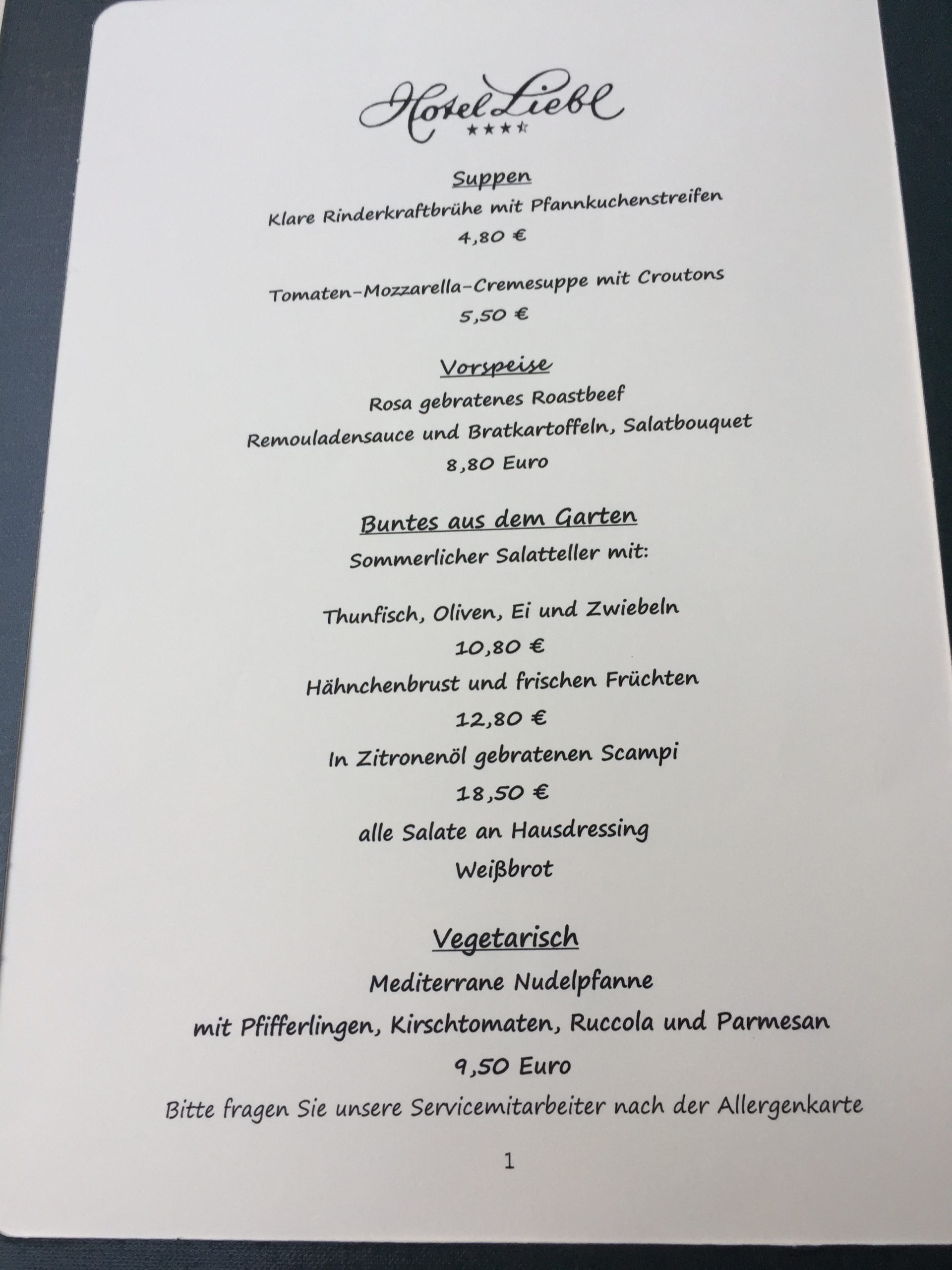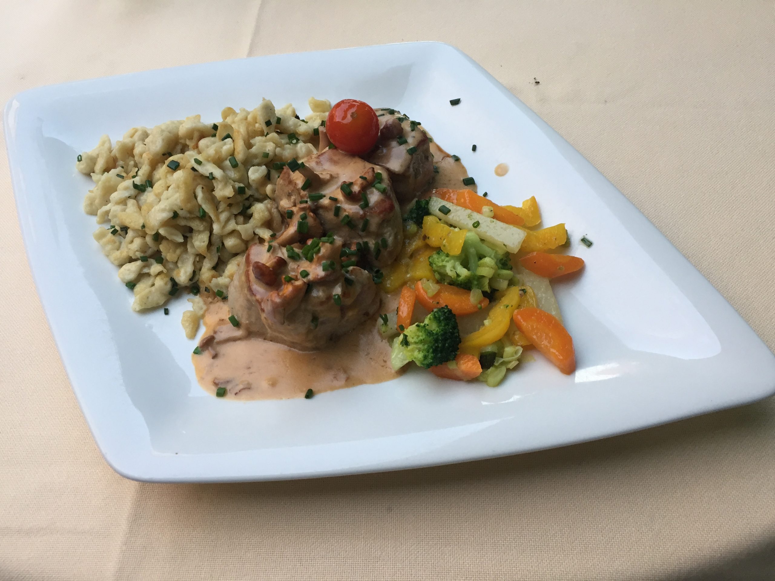 The highlight of the hotel, in my opinion, is the restaurant – on a hot summer evening the outside dining area was an ideal location to enjoy some good traditional Bavarian food. Breakfast was served indoors at the restaurant – I felt the breakfast was a little disappointing.